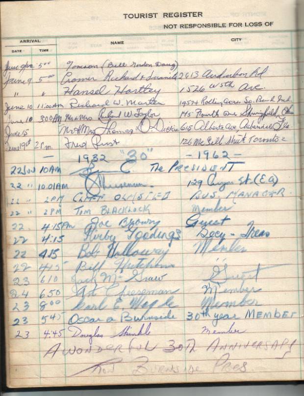 in the club. Signatures in the Guest Registers show the Club